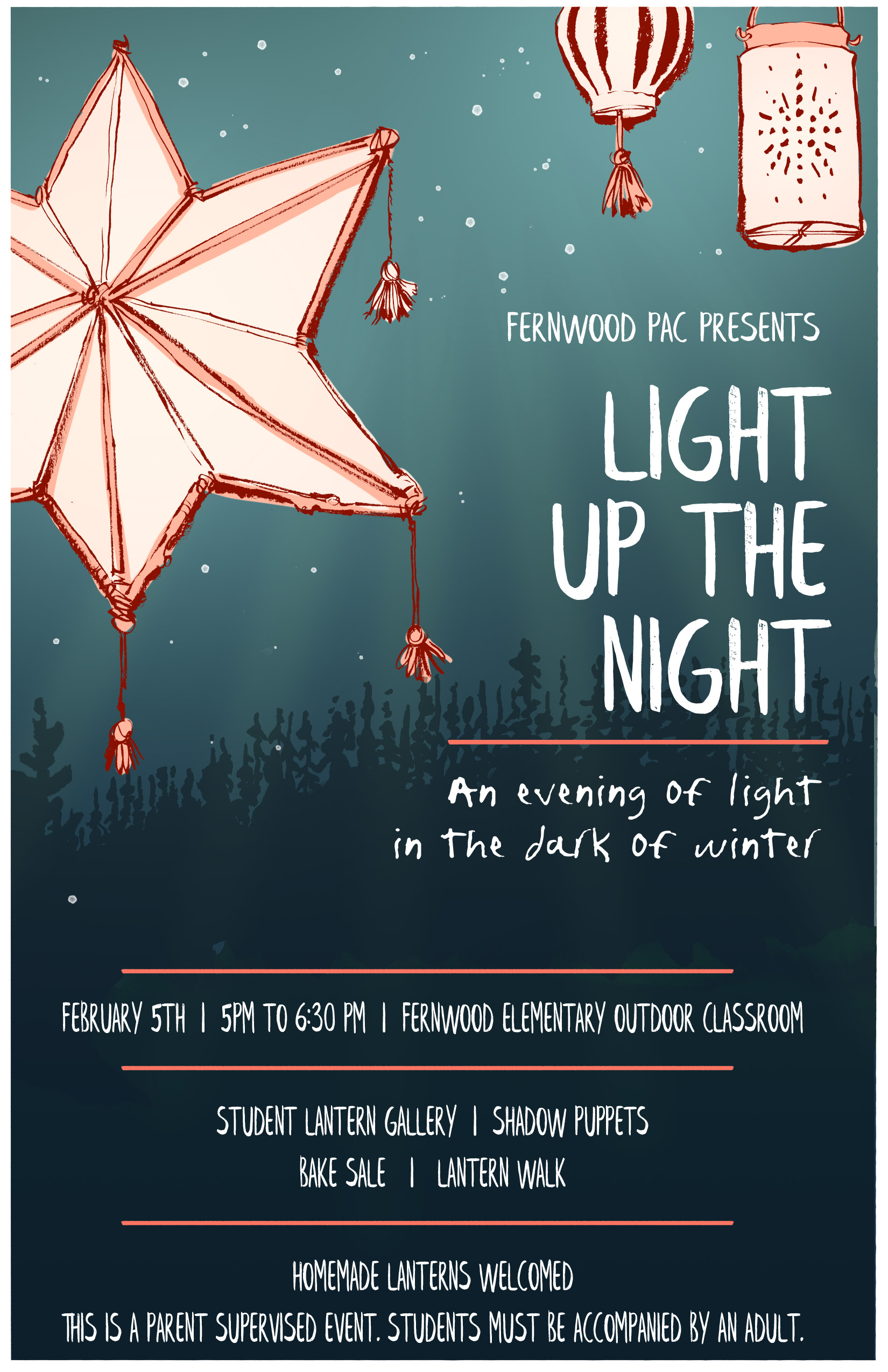 Please find attached this week's School Newsletter and the event poster for tonight's 4th Annual Fernwood School Light Up the Night Celebration that starts at 5:00 pm sponsored by your PAC!