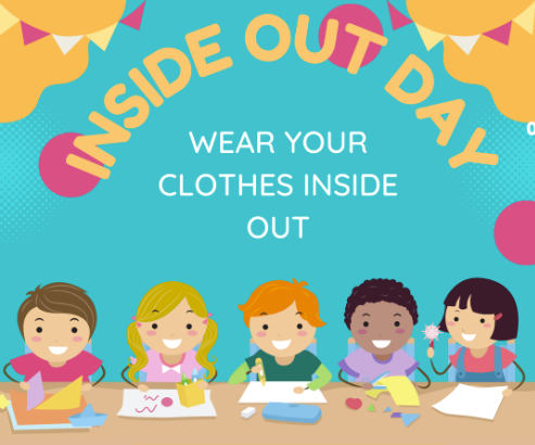 Tomorrow for a fun 'Friday School Day Theme' we welcome anyone to wear your clothes inside out! It's Inside Out Day tomorrow!