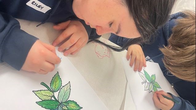 Groups rotated through a variety of hands-on activities: from nettle art and nettle science to nettle writing and nettle cooking (and much more). The morning wrapped with the whole school coming together to enjoy a delicious nettle feast that everyone helped prepare, served proudly by our older students. The menu offered nettle pizza, nettle pesto crostini, and nettle soup, with nettle cake for dessert.